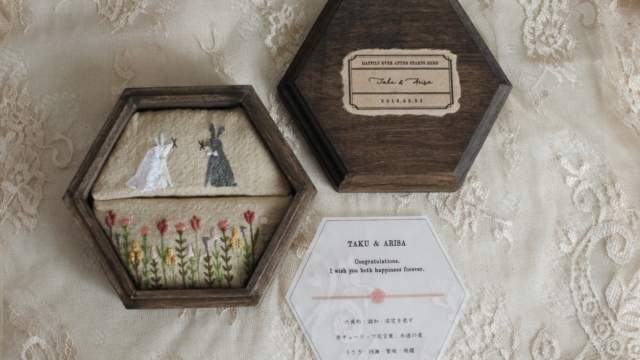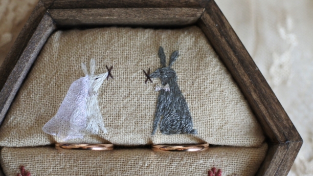 ご自身やお知り合いの方に頼んで、アリノコ舎のリングピローを模したものを作られている方がいらっしゃるようです。