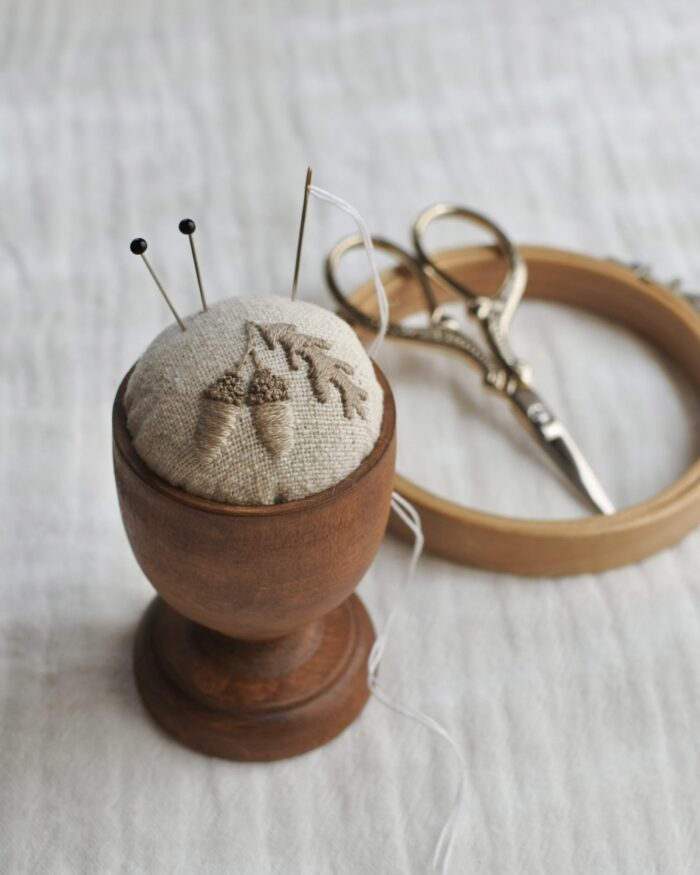 レッスンでお作りいただくのは、どんぐりのピンクッションです。